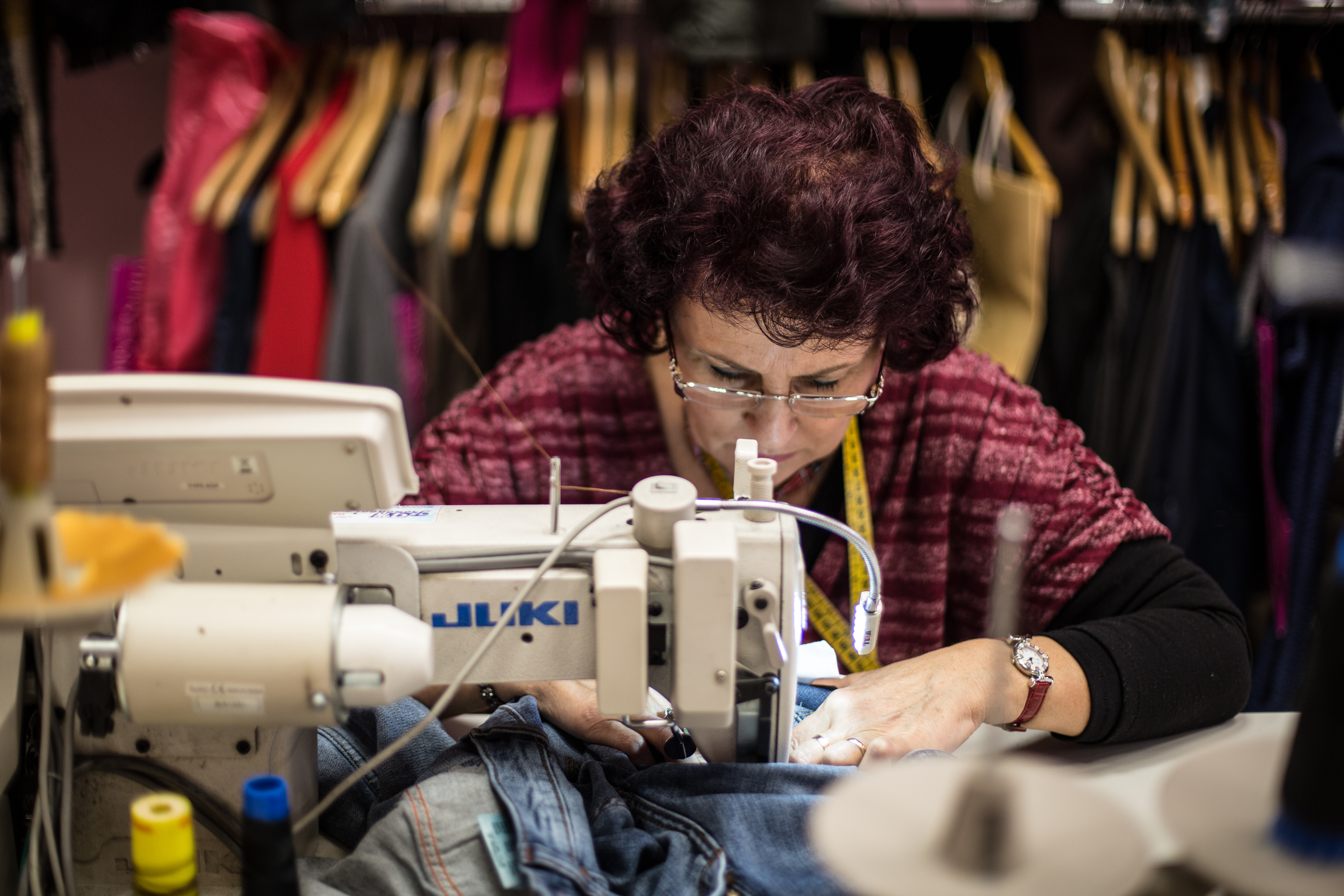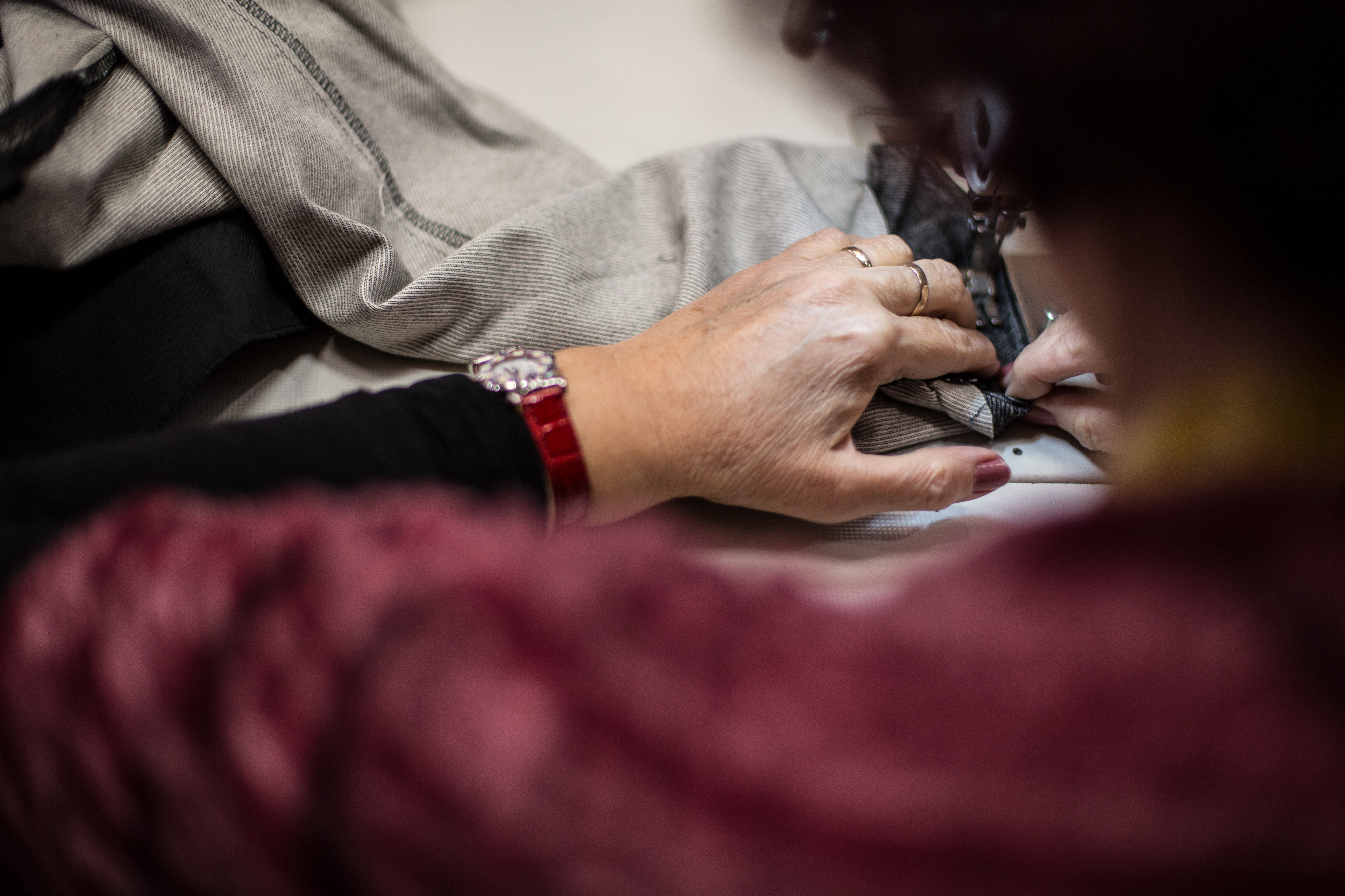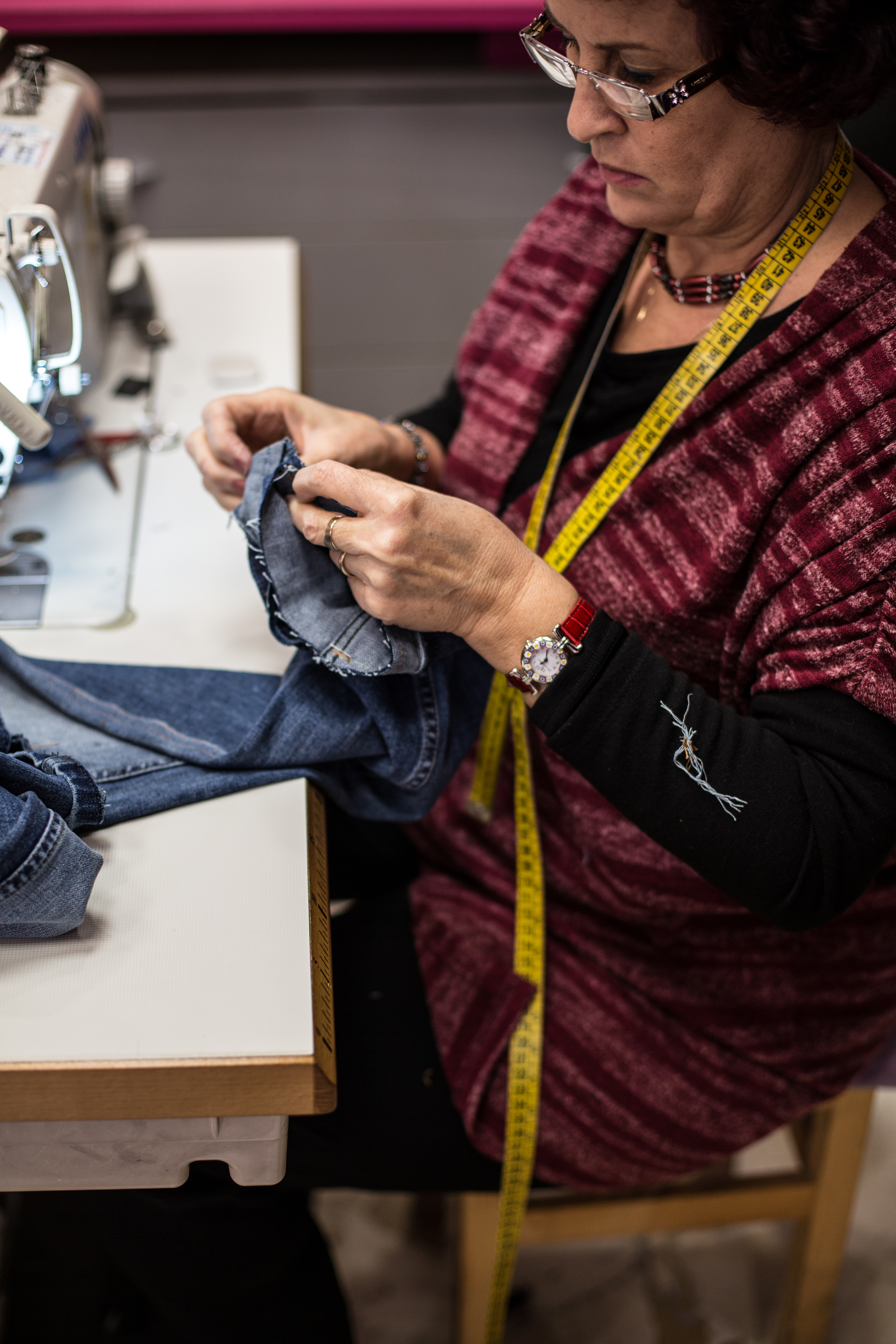 “Esistono tantissime tipologie di orlo, create da diverse lavorazioni – spiega Roberta. “Ad esempio c’è l’orlo lineare- tipo jeans, orlo con l’impuntura, adatto per i jeans e per i pantaloni sportivi, può essere eseguito alla perfezione su ogni tipo di tessuto, dal cotone ai tessuti più pesanti. Poi c’è l’orlo invisibile, perfetto per i pantaloni classici, realizzato con un filo speciale e si esegue con una macchina chiamata sottopunto.